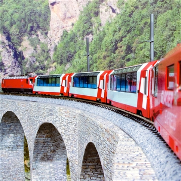 Der Glacier Express ist die berühmteste Bahn der Welt. Sie fährt in rund sieben Stunden von Zermatt nach Davos oder St. Moritz.